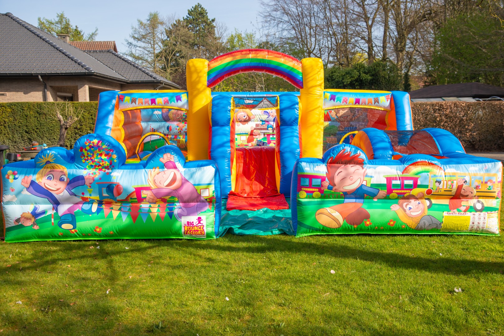 De Kids Multiplay Funpark huren is perfect voor wie op zoek is naar een veelzijdige en veilige speelattractie voor jonge kinderen. Deze grote opblaasbare speelzone combineert springen, klauteren, spelen en glijden in één overzichtelijk geheel.